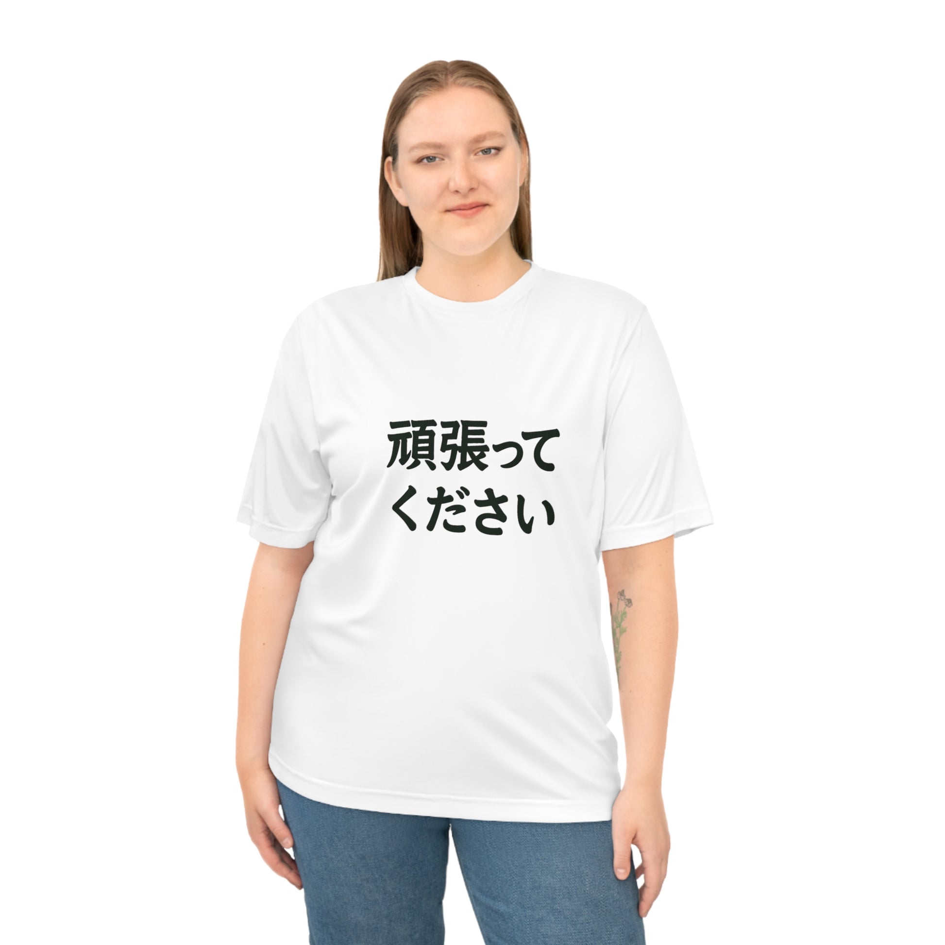 This lightweight athletic tee carries a quiet, encouraging message in Japanese — a simple phrase rendered in bold, hand-drawn brush strokes across the chest. The fabric breathes and moves with you, keeping skin dry and comfortable whether you're on a morning run, cycling through the city, or pacing the studio. Its subtle, minimalist design speaks to people who appreciate thoughtful, understated style and who want a small reminder of resilience woven into everyday motion. Wear it on training days, long walks, or low-key gatherings with friends; it layers easily under jackets or stands alone when you want a clean, contemporary look.